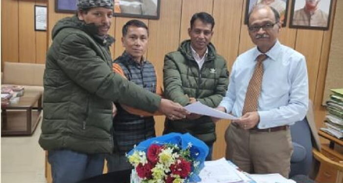 फोटो- राज्य सचिवालय मे मुख्य सचिव को ज्ञापन देते हुए क्षेत्र प्रमुख हरीश परमार व अन्य ।