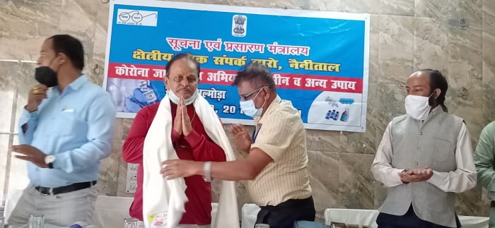 कार्यक्रम के शुरुआत में बोलते हुए विभाग के भारतीय सूचना सेवा के अधिकारी राजेश सिन्हा ने कहा कि भारत सरकार की ओर से ग्रामीण व सुदूर इलाकों में कोरोना से बचाव और स्वच्छ भारत मिशन को लेकर जन जागरूकता अभियान चलाया जा रहा है । इसी सिलसिले में कल भी अल्मोड़ा के बगल में हवालबाग ब्लॉक में एक कार्यक्रम किया गया जिसमें पंचायत प्रमुखों के बीच कोरोना से बचाव को लेकर भारत सरकार की ओर से किए जा रहे संस्थागत मदद की चर्चा की गई। उन्होंने लोगों से कोरोना के संभावित तीसरे लहर से बचाव के लिए सुरक्षात्मक उपाय और समुचित सूचना को ग्रहण करने की आवश्यकता पर बल दिया ।