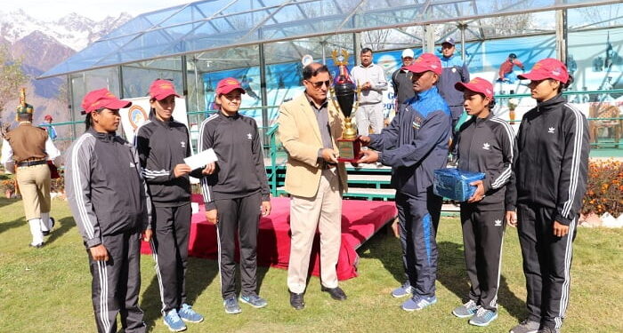 पर्वतारोहण एंव स्कींइग संस्थान औली पंहुचने पर संस्थान के प्रधानाचार्य/उप महानिरीक्षक गंभीर सिंह चैहान ने प्रतिभागी टीम व खिलाडियों को मैडल व ट्राफी व अन्य पुरूष्कार देकर सम्मानित किया।