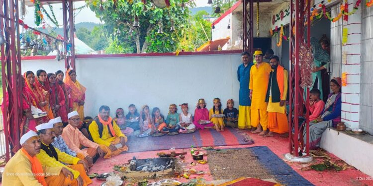 गुरुवार को नंदा सिद्धपीठ में नवरात्रा कार्यक्रम का विजयदशमी के पर्व पर मां भगवती नंदा देवी की पूजा अर्चना किया गया इस मौके पर हवन-यज्ञ के साथ ही मंदिर में जमाईं गई हरियाली काटी गई जिसे पहले भगवती नंदा देवी को चढ़ावा किया गया उसके बाद इसी हरियाली को परसादी के रूप में नंदा भक्तों को वितरित किया।इस दौरान कन्या पूजा भी किया गया।इस अवसर पर क्षेत्र के 10 गांव के नंदा भक्तों ने प्रतिभाग किया। इस अवसर पर मंदिर समिति के अध्यक्ष भुवन हटवाल के अलावा मुख्य पुजारी मंशा राम गौड, योगेश गौड, रणजीत सिह रावत,रघुवीर सिह गुसांई, मोहन प्रसाद देवराड़ी, पुष्कर सिंह गुसांई गौरा देवी, जयंती पंत, सुरेंद्र सिह गुसांई सचिव वीरेंद्र सिह गुसांई, मदन गुसांई, पं राजपांडे, थराली नगर पंचायत अध्यक्ष सुनीता रावत,विनोद रावत, थराली व्यापार संघ के अध्यक्ष संदीप रावत, प्रदीप जोशी, लता देवी, महेशी देवी,पवन रावत,महावीर रावत आदि ने पूजा-अर्चना एवं भंडारे में सक्रिय भूमिका निभाई।
