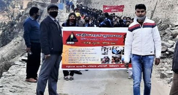 जोशीमठ, चमोली। राष्ट्रीय सड़क सुरक्षा अभियान के तहत सड़क दुर्घटनाओं की रोकथाम हेतु शुक्रवार को परिवहन विभाग के तत्वाधान में स्कूली बच्चों की रैली निकालकर लोगों को जागरूक किया गया। शुक्रवार को राजकीय इंटर काॅलेज लंगासू के छात्र.छात्राओं ने लंगासू से जिलासू तक भव्य जागरूकता रैली निकालकर आम लोगों को सड़क सुरक्षा को लेकर यातायात नियमों का पालन करने का संदेश दिया गया। ताकि पहाड़ों पर हो रही सड़क दुर्घटनाओं पर अंकुश लगाया जा सके।