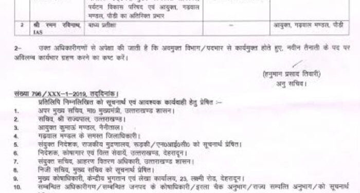 जबकि आईएएस अफसर दिलीप जावलकर से आयुक्त गढ़वाल मंडल का अतिरिक्त प्रभार वापस लिया गया है। सचिव पर्यटन, धर्मस्व एवं संस्कृति, सूचना, नागरिक उड्डयन, मुख्य कार्यकारी अधिकारी, पर्यटन विकास परिषद की जिम्मेदारी उनके पास बनी रहेगी।