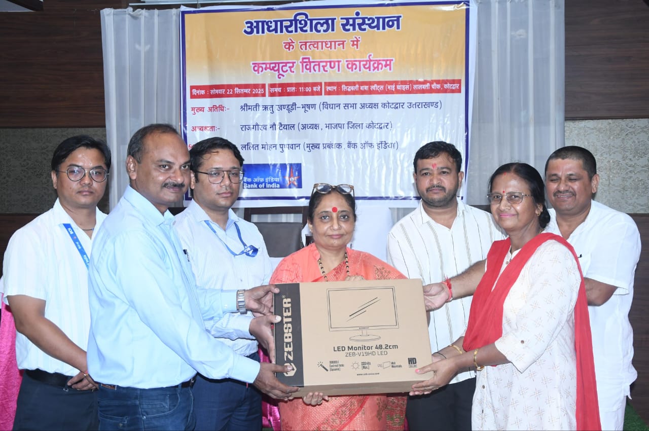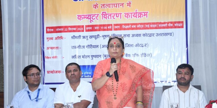 22 सितंबर 2025, कोटद्वार। विधानसभा अध्यक्ष उत्तराखंड एवं कोटद्वार विधायक श्रीमती ऋतु खण्डूड़ी भूषण ने आज कोटद्वार के लालबत्ती चौक स्थित होटल में आधारशिला संस्थान के तत्वावधान में आयोजित कंप्यूटर वितरण कार्यक्रम में मुख्य अतिथि के रूप में शिरकत की।