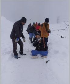 निगम के स्कीइंग प्रशिक्षक कमल किशोर डिमरी व विजय रतूड़ी ने अपनी टीम के साथ दो से ढाई फीट बर्फ काटकर पर्यटकों को किसी तरह सुरक्षित पहुंचाया।