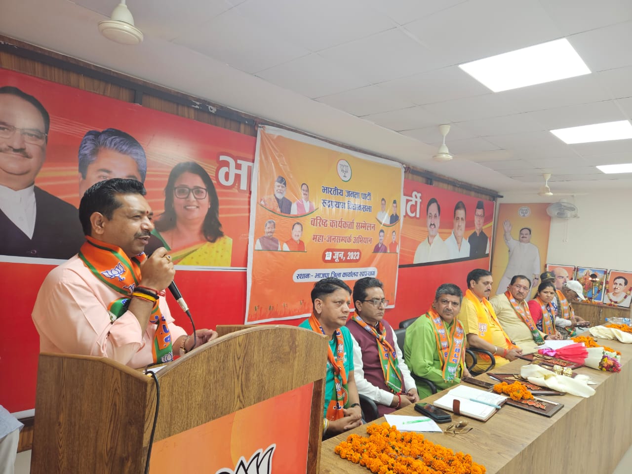 इस अवसर पर जिलाध्यक्ष महावीर पंवार ने कार्यक्रम कि अध्यक्षता करते हुये कार्यक्रम की शुरूआत स्वागत भाषण से की।उन्होने आगामी कार्यक्रमों की विस्तृत जानकारी देते हुये आगे महाजनसंपर्क अभियान के सभी कार्यक्रमों को सफल बनाने हेतु कार्यकर्ताओं का आवाहन किया।