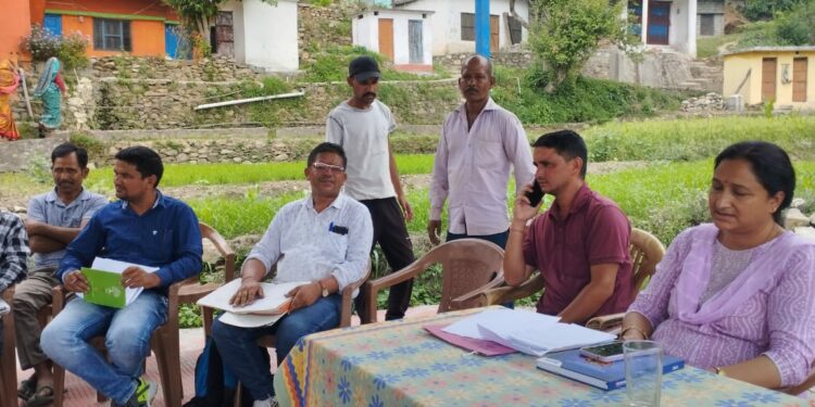 रुद्रप्रयाग – जनपद रुद्रप्रयाग के विकासखण्ड अगस्त्यमुनि के ग्राम पंचायत मदोला मे जिलाधिकारी मयूर दीक्षित के निर्देशानुसार सरकार जनता के द्वार कार्यक्रम के तहत जिला विकास अधिकारी अनीता पँवार की अध्यक्षता मे विभिन्न विभागों के अधिकारीयों सहित ग्रामीणों के साथ चौपाल आयोजित कर सुनी समस्याएं।