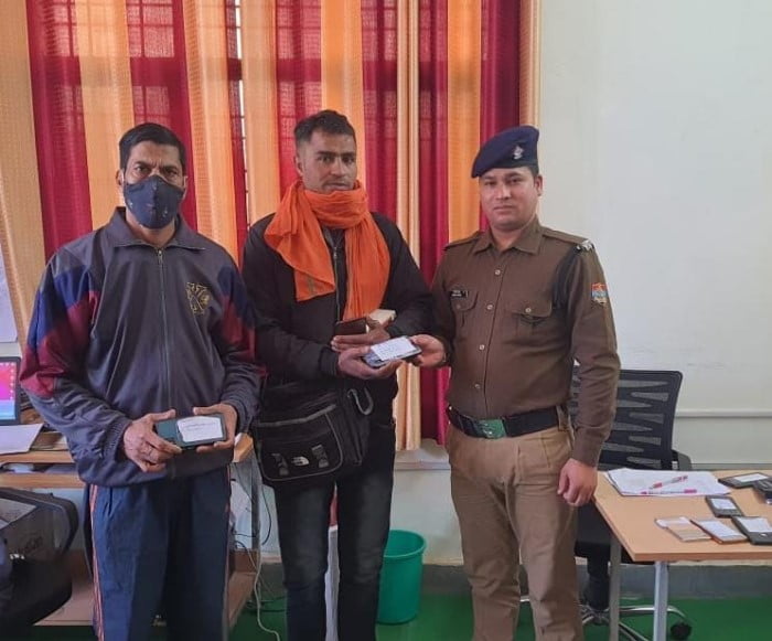 निर्गत निर्देशों के अनुपालन में जनपदीय थानों एवं जनपद रुद्रप्रयाग साइबर सैल द्वारा कुल 17 खोये हुए मोबाइल फोनों की बरामदगी की गयी है। जिनमें से 03 मोबाइल कुछ दिनों पहले ही सम्बन्धित व्यक्तियों को दिये गये हैंएशेष 14 फोन स्वामियों को अपने फोन लेने हेतु बुलाया गया था। कुछ लोग अपने निजी कार्यों से जनपद में न होने के कारण नहीं आ पाये है। फिर भी जो 11 लोग या उनके परिजन आज आये हैं, आवश्यक सत्यापन इत्यादि की कार्यवाही के बाद वे लोग अपने फोन पाकर काफी खुश हुए है। ये फोन तकरीबन 10 हजार से लेकर 25 हजार रुपये तक की रेंज के हैं। ये बरामद फोन सैमसंग, वीवो, ओप्पो, शाओमी इत्यादि कंपनियों के हैं।