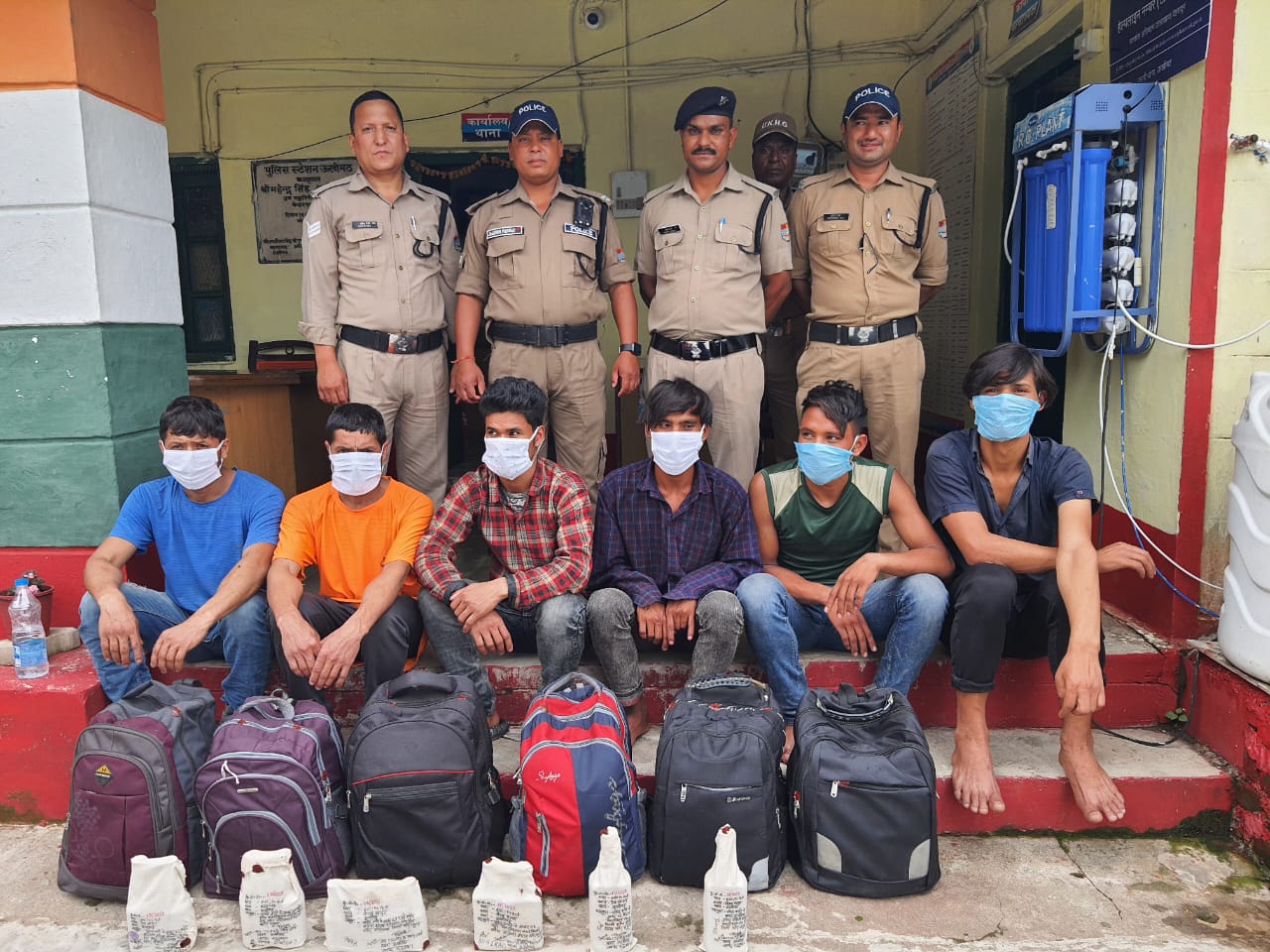 चेकिंग के दौरान 06 नेपाली मूल के व्यक्तियों के कब्जे से अलग-अलग मात्राओं में 52 पव्वे एवं 52 अद्धे सोलमेट व्हिस्की,28 बोतल एवं 26 अद्धे मैक्डॉवल नम्बर 1 व्हिस्की *(कुल मात्रा बोतल के अनुसार 78 बोतल)* अवैध शराब की बरामदगी हुई।इनके द्वारा यह शराब अपने-अपने पिट्ठू बैगों में ले जायी जा रही थी,इनके विरुद्ध थाना ऊखीमठ पर आबकारी अधिनियम की सुसंगत धाराओं में अभियोग पंजीकृत कर आवश्यक कार्यवाही की गयी है।