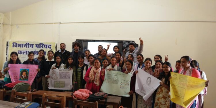 पोस्टर प्रतियोगिता में बीए 6 सेमेस्टर की रेखा ने प्रथम,बीए द्वितीय सेमेस्टर की किरन पिमोली ने द्वितीय, बीए 6 सेमेस्टर की छात्रा खस्ती पिमोली एवं दिव्या ने संयुक्त रूप से तृतीय स्थान प्राप्त किया।