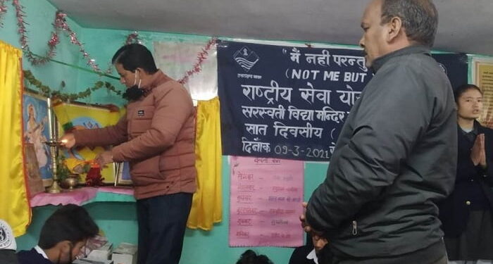 सरस्वती विद्या मंदिर इण्टर कालेज के एनएसएस के सात दिवसीय विशेष शिविर का शुभारंभ सरस्वती विद्या मदिर इण्टर कालेज के प्रधानाचार्य शंभू प्रसाद चमोला व सरस्वती विद्या मंदिर के प्रधानाचार्य बद्री ंिसह नेगी ने संयुक्त रूप से दीप प्रज्जवलित कर किया।