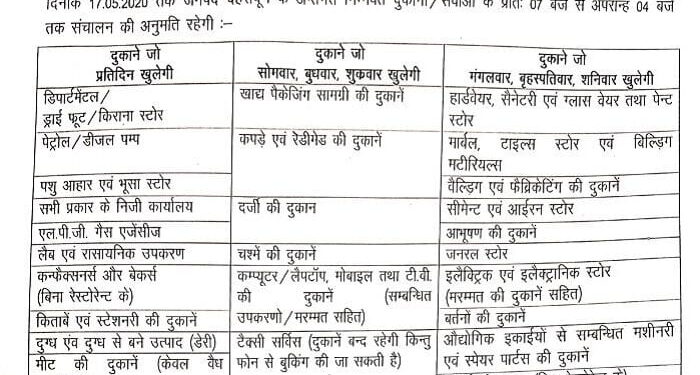 देहरादून। भारत सरकार के गृह मंत्रालय के आदेश के क्रम में उत्तराखंड सरकार ने आदेश जारी किया है। ब्राउन जोन में स्थित जनपद देहरादून के लिए यह सूची है। जिसमें आवश्यक वस्तुओं की दुकानें प्रतिदिन खोली जाएंगी। इसके अलावा कुछ दुकानें सोमवार, बुधबार और शुक्रवार खुलेंगी, जबकि अन्य मंगलवार, वृहस्पतिवार और शनिवार को खुलेंगी। इस बाबत राज्य सरकार द्वारा आदेश जारी किया गया है। आदेश कौन दुकानें प्रतिदिन खुलेंगी और कौन दुकानें सप्ताह में तीन दिन खुलेंगी, उसकी सूची दी गई है।