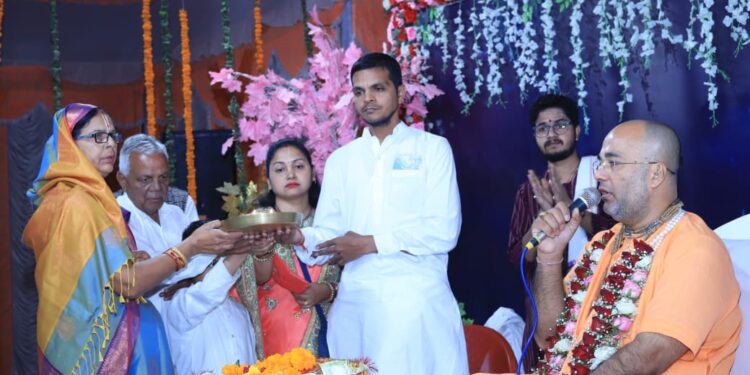 डोईवाला। श्रीमद्भागवत महापुराण कथा का समापन जौलीग्रांट क्षेत्र में अत्यधिक आध्यात्मिक और भव्य वातावरण में हुआ। जिसमें पूर्णाहुति यज्ञ और महाप्रसाद का आयोजन किया गया। यह विशेष आयोजन गौड़ीय मठ थानों के त्रिदण्डी स्वामी भक्ति प्रसाद त्रिविक्रम महाराज के पावन वचनों से संपन्न हुआ। इस दिव्य आयोजन में कथा व्यास स्वामी भक्ति प्रसाद त्रिविक्रम महाराज ने बताया कि भगवान श्रीकृष्ण की भक्ति सच्ची श्रद्धा और समर्पण से ही साकार होती है। यही भक्ति जीवन के सर्वोत्तम मार्ग की ओर ले जाती है। कृष्ण भक्ति की शक्ति और महिमा जीवन के हर क्षेत्र में सकारात्मक बदलाव ला सकती है। उन्होंने भक्तों को आह्वान किया कि वे अपनी आत्मा की शुद्धि के लिए निरंतर भगवान के नाम का जप करें और जीवन को परमात्मा की दिशा में समर्पित करें। इस धार्मिक आयोजन में श्रद्धालु भक्तों ने बढ़-चढ़कर भाग लिया और उनका मन कृष्ण भक्ति में पूरी तरह रमा हुआ था। आयोजन में राकेश जोशी, सतीश जोशी, सुशील जोशी, प्रमोद जोशी, सुधीर जोशी, अनुज जोशी, मीना जोशी, सुधा आदि मौजूद रहे।