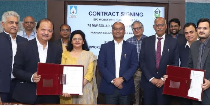 देहरादून। एसजेवीएन ने उत्तर प्रदेश में परासन सोलर पार्क में स्थित 75 मेगावाट एसी सोलर पावर परियोजना के विकास एवं ओ एंड एम हेतु इंजीनियरिंग प्रोक्योरमेंट एवं कंसट्रक्शन ईपीसी के आधार पर मैसर्स सोलरवर्ल्ड एनर्जी सॉल्यूशन्स प्राईवेट लिमिटेड नोएडा के साथ अनुबंध किया है।