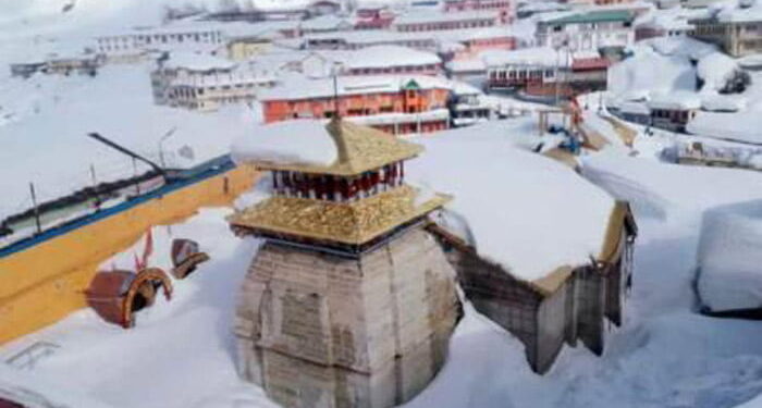 फोटो– भारी बर्फबारी के बाद बदरीनाथ मंदिर परिसर व सिंहद्वार बर्फ से पटा हुआ।