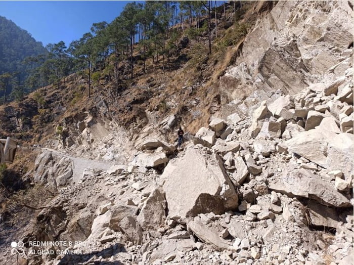 बताया जा रहा है कि सोमवार की सांय सड़क चौड़ीकरण के दौरान इस सड़क के प्राणमती नदी पर बने मोटर पुल से पहले करीब 100 की दूरी पर एक पहाड़ी को तोडने के लिए विस्फोटक पदार्थों का प्रयोग किया गया था। विस्फोट करने के बाद सड़क पर गिरे बोल्डर, पत्थर एवं मलबे को साफ करने के लिए जैसे ही जेसीबी मशीन गई अचानक पहाड़ से एक बार फिर से पत्थरों एवं मलबा गिरने लगा। काफी मात्रा में पत्थर व मलबा जेसीबी मशीन पर भी गिर गया, जिससे मशीन सड़क के बीचों.बीच क्षतिग्रस्त हो गई।गनीमत रही कि इस हादसे में मशीन आपरेटर सुरक्षित बच गया। मशीन के सड़क के बीचों बीच क्षतिग्रस्त हो जाने के कारण पिछले 36 घंटों से अधिक समय से सोल क्षेत्र के 16 बड़े.बड़े गांवों का यातायात संपर्क तहसील मुख्यालय थराली सहित देश के अन्य भागों से कटा हुआ है। बताया जा रहा है कि विस्फोट के बाद इस खड़ी चट्टान पर अब भी दरारें उभरी हुई हैं। जिससे कभी भी कोई बड़ा हादसा हो सकता है, लेकिन विभाग इस और ध्यान नहीं दे रहा है।
