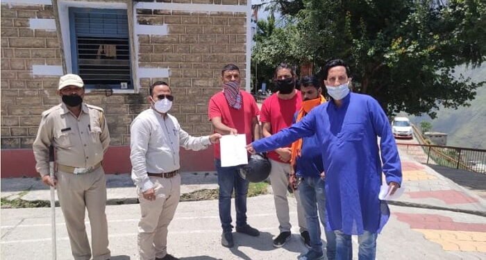 फोटो– यात्रा शुरू करने के विरोध मे ज्ञापन सौपते तीर्थपुरोहित ।
