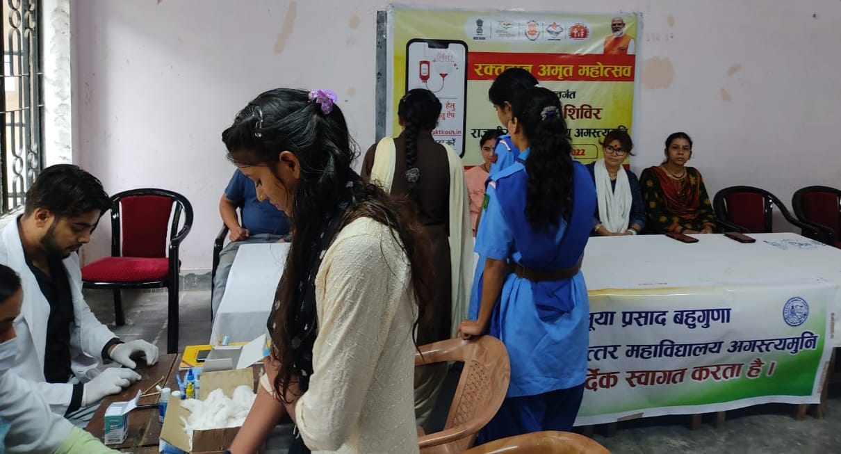 अगस्त्यम्युनि। राजकीय स्नातकोत्तर महाविद्यालय अगस्त्यमुनि में प्राचार्य प्रो पुष्पा नेगी के निर्देशन व चिकित्सा स्वास्थ्य एवं परिवार कल्याण विभाग रुद्रप्रयाग के तत्वावधान में मेगा स्वैच्छिक रक्तदान शिविर का आयोजन किया गया।