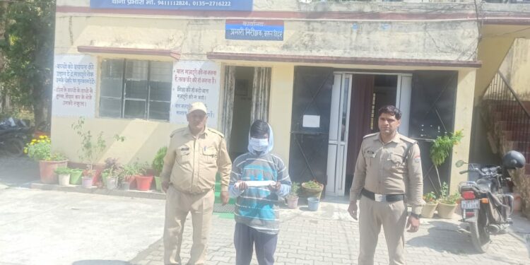 देहरादून : पुलिस उपमहानिरीक्षक/वरिष्ठ पुलिस अधीक्षक जनपद देहरादून द्वारा रात्रि में चोरी, नकबजनी आदि घटनाओं की रोकथाम हेतु दिए गए आदेश निर्देशों के क्रम में पुलिस अधीक्षक नगर के निर्देशन एवं क्षेत्राधिकारी कोतवाली नगर के निकट पर्यवेक्षण में प्रभारी निरीक्षक थाना बसंत बिहार द्वारा रात्रिधिकारी एवं चीता पीकेट कर्म गणों को प्राप्त आदेश निर्देशों से अवगत कर उचित दिशा निर्देश देकर रवाना किया गया। उक्त क्रम में चीता कर्म गणों द्वारा स्टैंडर्ड बेकरी के सामने वाली सड़क के पास राहुल नामक व्यक्ति को संदिग्ध अवस्था में घूमने एवं कब्जे से एक अवैध चाकू मिलने पर आरोपी के विरुद्ध अंतर्गत धारा 25/4 आर्म्स एक्ट अभियोग पंजीकृत किया गया अभि० को माननीय न्यायालय पेश किया जा रहा है। नाम पता आरोपी – राहुल पुत्र रणजीत सिंह निवासी ग्राम बंधुवार थाना नीमचंद बेगूसराय बिहार उम्र 22 वर्ष।