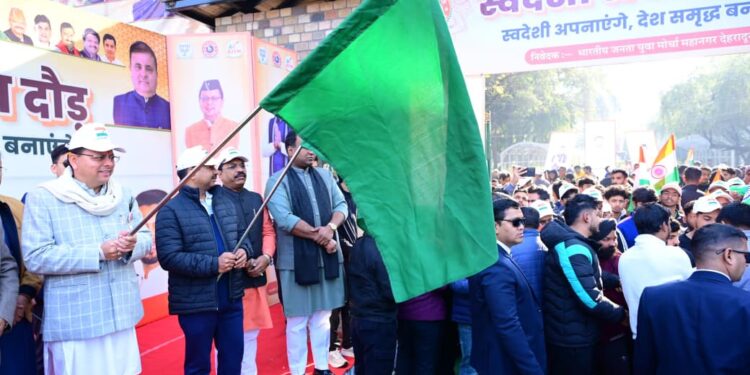 राष्ट्रीय युवा दिवस के अवसर पर मुख्यमंत्री श्री पुष्कर सिंह धामी ने गांधी पार्क देहरादून में स्वदेशी संकल्प दौड़ का शुभारंभ किया। इस अवसर मुख्यमंत्री ने स्वामी विवेकानंद जी के चित्र पर श्रद्धा सुमन अर्पित कर उनको नमन किया। स्वदेशी उत्पादों को बढ़ावा देने वाली संस्थाओं को उन्होंने सम्मानित भी किया। मुख्यमंत्री ने कहा कि स्वामी विवेकानंद जी का उठो, जागो और लक्ष्य की प्राप्ति तक रुको मत का संदेश देश की मजबूत नींव के लिए युवाओं को हमेशा प्रेरित करता रहेगा।