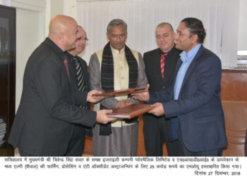 देहरादून। गुरूवार को सचिवालय में मुख्यमंत्री श्री त्रिवेन्द्र सिंह रावत के समक्ष इजराइली व्यापारिक कम्पनी प्योरमैजिक लिमिटेड के सीईओ टोमर ...