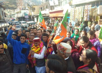 फोटो-गृह नगर जोशीमठ पंहुचने पर बदरी-केदार मंदिर समिति के नवनियुक्त अध्यक्ष मोहनप्रसाद थपलियाल के स्वागत मे उमडे लोग। प्रकाश कपरूवाण ...