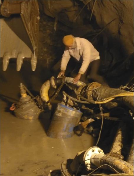 02-सुरंग के अन्दर पंपांे को फिट करते हुए।