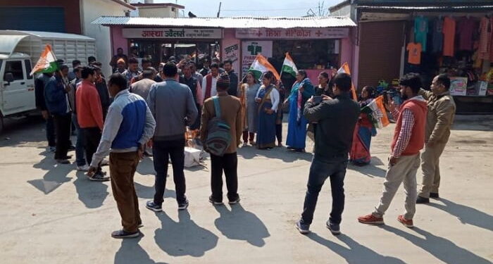 नंदप्रयाग.घाट मोटर सड़क को डेढ़ लाईन किए जाने की मांग को लेकर राज्य की ग्रीष्मकालीन राजधानी भराड़ीसैंण कूच करने के लिए गए घाट विकासखंड के निहत्थे आंदोलनकारियों पर दिवालीखाल में पुलिस के द्वारा किए गए लाठीचार्ज का विरोध जारी हैं। इसके विरोध में बुधवार को कांग्रेस कमेटी के ब्लाक अध्यक्ष इंद्र सिंह राणा के नेतृत्व में देवाल टैक्सी स्टैंड से एक जुलूस निकाला गया।जो मैन मार्केट, एसबीआई होते हुए वापस देवाल मुख्य चौराहे पर पहुंचा जहां पर कांग्रेसियों ने जम कर प्रर्दशन करते हुए मुख्यमंत्री, राज्य सरकार एवं पुलिस प्रशासन के खिलाफ नारेबाजी की। इसके बाद यही पर मुख्यमंत्री के पुतले को फूंका गया। कांग्रेसियों ने निहत्थे लोगों पर किए गए लाठीचार्ज को कायराना हरकत बताते हुए राज्य सरकार से नैतिकता के आधार पर इस्तीफा दिए जाने की मांग की। इस मौके पर देवाल की पूर्व ब्लाक प्रमुख उर्मिला बिष्ट, जेष्ठ प्रमुख संगीत बिष्ट, महिला कांग्रेस की ब्लाक अध्यक्ष पुष्पा नेगी, पुष्पा मिश्रा, क्षेपंस प्रताप राम, पूर्व अध्यक्ष लखन रावत, कंचन बिष्ट, देवाल के पूर्व प्रधान यादव चंद्र मिश्रा, चंद्रमोहन मिश्रा, मोहन दानू, बवीर दानू सहित तमाम कांग्रेसी मौजूद थे।