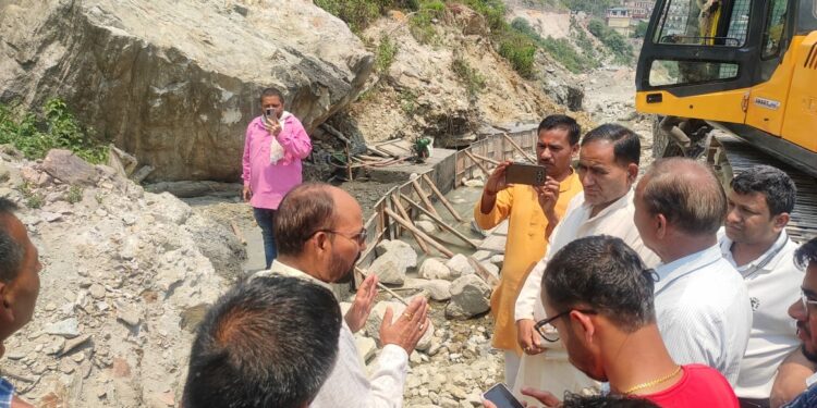 थराली। विकासखंड नारायणबगड़ के अंतर्गत केवर गांव के नीचे ग्वालदम-थराली-कर्णप्रयाग राष्ट्रीय राजमार्ग के नीचे हो रहे भूकटाव एवं भूस्खलन को रोकने के लिए वृहद कार्ययोजना बनवाने के तहत थराली विधानसभा क्षेत्र के विधायक भूपाल राम टम्टा के रविवार को पंचायत प्रतिनिधियों के साथ भूस्खलन स्थल का निरीक्षण किया। इसके तहत विधायक ने 14 जून को जनप्रतिनिधियों, सिंचाई विभाग के अधिकारियों एवं डीजीबीआर के अधिकारियों की एक बैठक आयोजित की हैं।