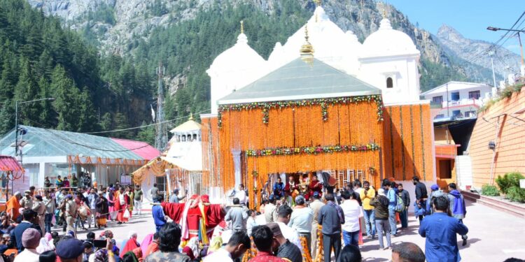 मुखीमठ( उत्तरकाशी)/ ऋषिकेश: श्री गंगोत्री धाम के कपाट अक्षय तृतीया शनिवार 22 अप्रैल को दिन में 12 बजकर 35 मिनट पर खुलेंगे। आज नवसंवत्सर चैत्र नवरात्रि के शुभ अवसर पर मां गंगा के शीतकालीन प्रवास मुखवा ( मुखीमठ) में श्री 5 मंदिर समिति गंगोत्री द्वारा मां गंगा भगवती दुर्गा की पूजा अर्चना के पश्चात विधि विधान पंचाग गणना के पश्चात विद्वान आचार्यों- तीर्थपुरोहितों द्वारा श्री गंगोत्री धाम के कपाट खुलने की तिथि तथा समय तय किया गया। तथा श्री 5 मंदिर समिति गंगोत्री के अध्यक्ष एवं तीर्थ पुरोहित हरीश सेमवाल तथा मंदिर समिति सचिव / तीर्थ पुरोहित सुरेश सेमवाल ने विधिवत कपाट खुलने की तिथि की विधिवत घोषणा की।