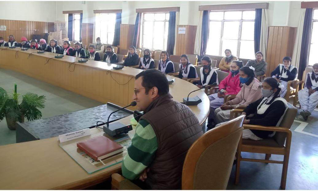 बेटी बचाओ बेटी पढ़ाओ कार्यक्रम के तहत रुद्रप्रयाग कलैक्ट्रेट भ्रमण पर आई स्कूली छात्राओं को जिलाधिकारी मनुज गोयल ने सफलता के टिप्स देते हुए अपने अनुभवों को नौनिहालों के बीच शेयर किया व सफलता के लिए लक्ष्य निर्धारण जरूरी बताया।