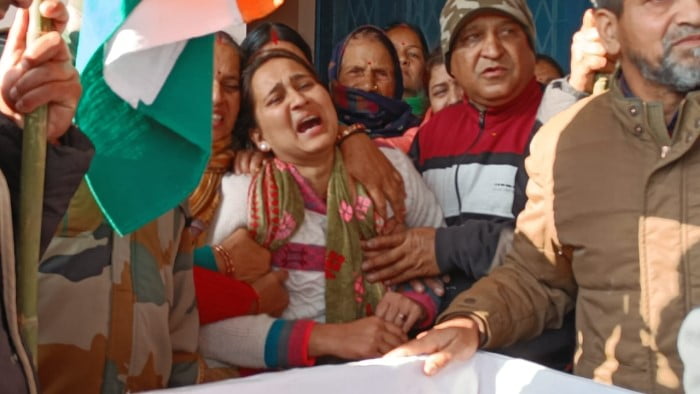 डोईवाला। सियाचिन लैंडस्लाइड में बीते सोमवार को शहीद हुए भानियावाला के निवासी हवलदार जगेंद्र सिंह चौहान 35 वर्ष, पुत्र सूबेदार मेजर राजेन्द्र सिंह चौहान का पार्थिव शरीर शुक्रवार को उनके निवास स्थान कान्हरवाला भानियावाला लाया गया। शहीद का शव देखकर पूरे इलाके में कोहराम मच गया।