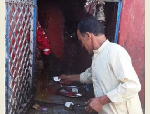 फोटो- तिमुण्डा वीर मंदिर मे पूजा करते तिमुण्डा के पश्वा भरत बैजवाडी।