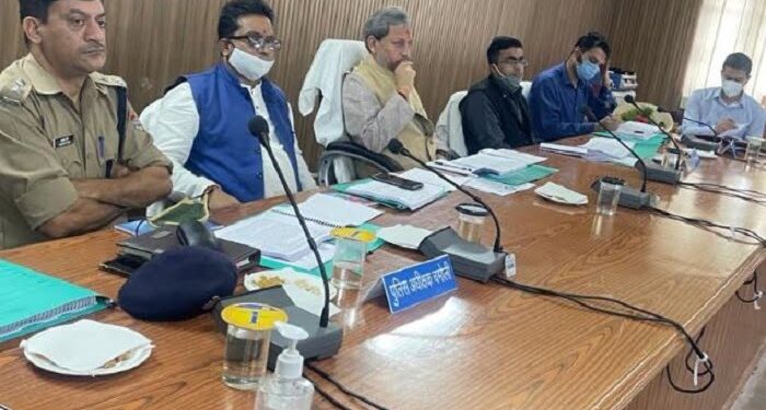 फोटो. जिलास्तरीय दिशा समिति की बैठक लेते पूर्व सी एम एवं सांसद तीरथ सिंह रावत।