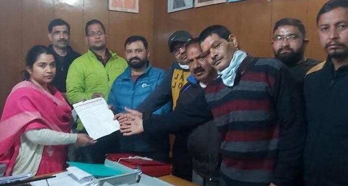 फोटो- जीएसटी की समस्याओं को लेकर एसडीएम कुमकुम जोशी को ज्ञापन सौंपते व्यापारी नेता ।