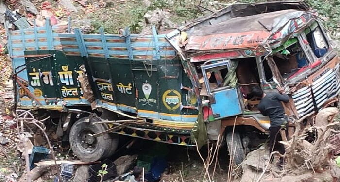 धौलछीना। हल्द्वानी से सब्जी लेकर थल जा रहा एक ट्रक मंगलवार सुबह धौलछीना के पास गहरी खाई में जा गिरा। दुर्घटना में ट्रक चालक की मौके पर ही मौत हो गई। सुबह मॉर्निंग वॉक पर निकले लोगों ने सबसे पहले दुर्घटनाग्रस्त ट्रक को देखा। घटना की जानकारी मिलने पर राजस्व विभाग तथा आपदा प्रबंधन की टीम मौके पर पहुंची। स्थानीय लोगों की मदद से शव को खाई से बाहर निकाला गया।