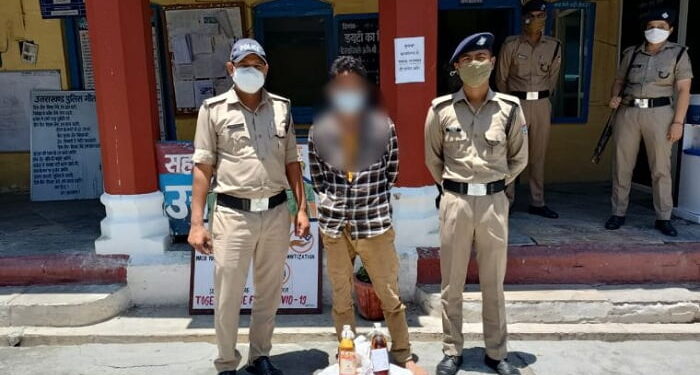 अल्मोड़ा। एक तरफ जहाँ कोरोना महामारी का दौर चल रहा है, लोग अपनी सुरक्षा में घरों में हैं, परन्तु कुछ लोगों द्वारा कोविड कर्फ्यू का फायदा उठाकर शराब बेचे जाने की सूचना पर पंकज भट्ट, वरिष्ठ पुलिस अधीक्षक अल्मोड़ा द्वारा सभी थाना प्रभारियों को ऐसे लोगों पर शीघ्र कार्यवाही करने के निर्देश पर कोतवाली अल्मोड़ा पुलिस द्वारा दो अलग.अलग मामलों में अभियुक्त सुरेश कुमार पुत्र कुशी राम निवासी ग्राम नौका पो0 शीतलाखेत जिला अल्मोड़ा द्वारा नियर जल निगम गेट खोल्टा की ओर कलमठ के पास 01 पेटी में 24 अद्धे मैक्ड्वाल न0 1 कीमत रू0 7200.00 व अभियुक्त राम सिंह पुत्र पदम सिंह निवासी चम्पानौला अल्मोड़ा एक लाल रंग के बैग में एक सफेद रंग के जरीकेन में लगभग चार लीटर अवैध शराब व एक कांच का गिलास बरामद कर गिरफ्तार किया गया है।