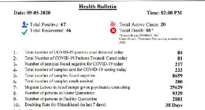 राज्य में कुल कोरोना एक्टिव केस 20 हैं, एक मरीज की मौत हो चुकी है। राज्य नियंत्रण कक्ष कोविड-19 ने आज ऊधमसिंह नगर में चार नए मामलों की पुष्टि की है।