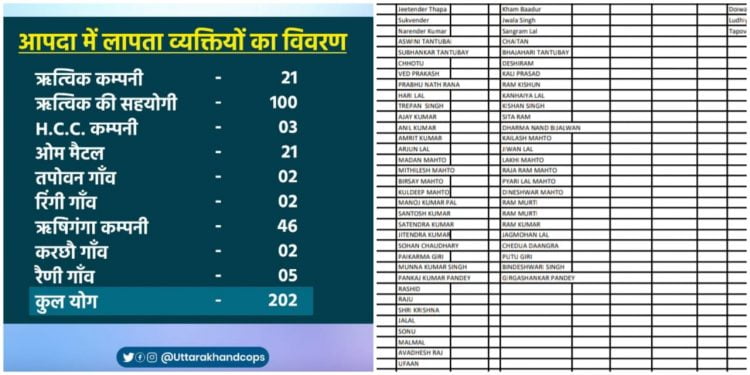 आपदा में लापता व्यक्तियों का विवरण, 202, लापता, देखिये लिस्ट