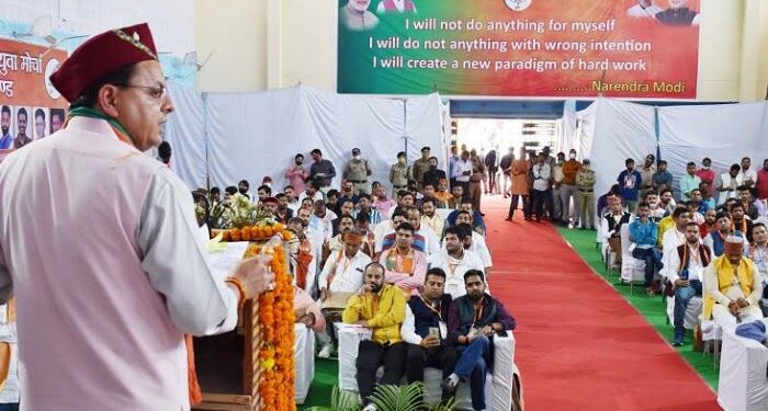 चमोली। मुख्यमंत्री पुष्कर सिंह धामी रविवार को गोपेश्वर पहंुचे। गोपेश्वर पहुंचने पर खेल मैदान में पुलिस के जवानों द्वारा उन्हें गॉड ऑफ ऑनर दिया गया। साथ ही जिलाधिकारी हिमांशु खुराना ने पुष्प गुच्छ देकर मुख्यमंत्री का स्वागत किया। इसके बाद मुख्यमंत्री ने पीजी कालेज गोपेश्वर के व्यायमशाला पहुंचकर भाजयुमो प्रदेश कार्यसमिति की बैठक व जनता मिलन कार्यक्रम में प्रतिभाग किया। मुख्यमंत्री के साथ भाजपा प्रदेश अध्यक्ष मदन कौशिक भी मौजूद रहे। युवा मोर्चा प्रदेश अध्यक्ष ने मुख्यमंत्री को स्मृति चिन्ह व शॉल भेंट की। उन्होंने कहा कि उत्तराखण्ड बने 21 साल हो गए हैं जब हम राज्य 25 वर्ष में होगा तो हिन्दुस्थान का आदर्श राज्य होगा जो भी घोषणा प्रदेश सरकार ने की है, वे सब धरातल पर दिख रही हैं।