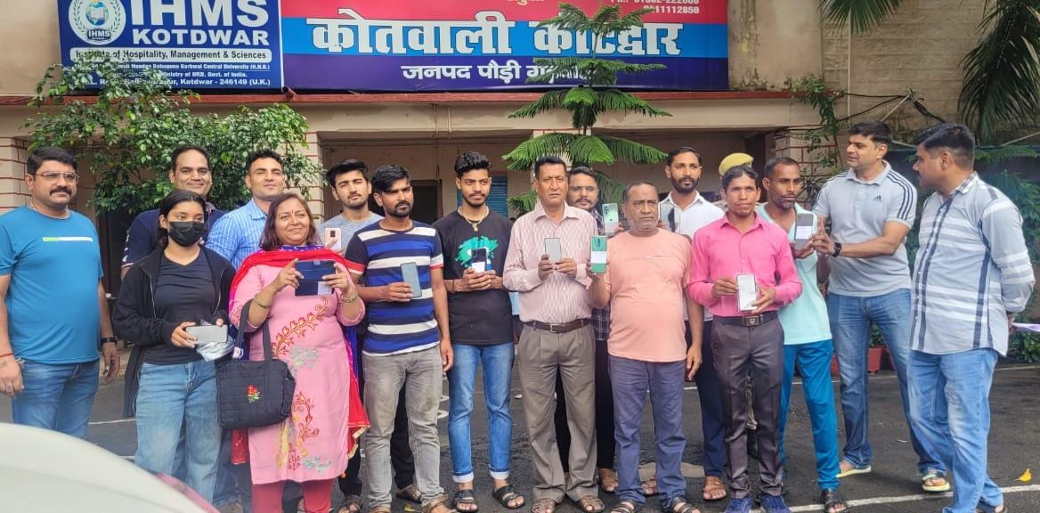आज दिनाँक 26-06-2023 को अपर पुलिस अधीक्षक श्री शेखर चन्द सुयाल द्वारा मोबाइल स्वमियों के सपुर्द किया गया। बरामद मोबाइलों की कीमत कुल लगभग 12,00,000 रुपये है। खोये हुये मोबाइल पाकर मालिकों ने खुशी का इजहार करते हुये पौड़ी पुलिस का आभार जताया।
