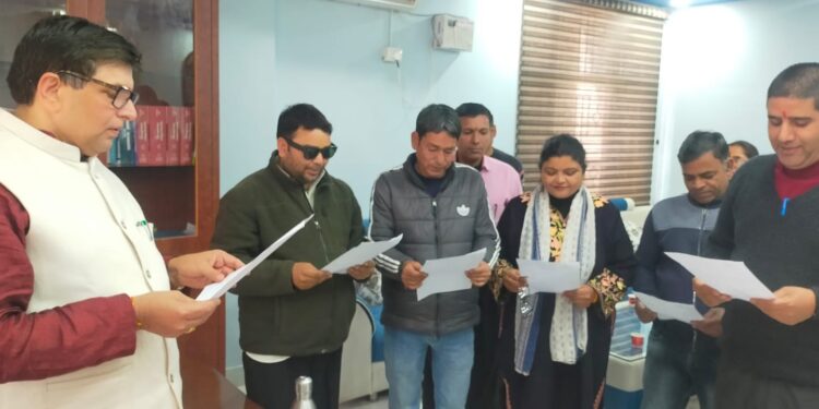 आज उत्तराखंड संस्कृत विश्वविद्यालय कर्मचारी संघ की पांचवी कार्यकारिणी का गठन हुआ। विश्वविद्यालय कुलपति प्रो० रमाकांत पांडेय द्वारा नवनिर्वाचित पदाधिकारियों को पद एवं गोपनीयता की शपथ दिलाई गई। कुलपति जी ने कहा कि हम सभी को विश्वविद्यालय के विकास में हम सभी को अपनी सहभागिता निभानी है व अपने कर्तव्यों का ईमानदारी से पालन करना कर्मचारियों का लक्ष्य होना चाहिए। संगठन अध्यक्ष पद पर श्री विनोद कुमार, उपाध्यक्ष महेंद्र रावत, सचिव नीतू रानी, सह-सचिव प्रवेश कुमार, सुधीर पालीवाल कोषाध्यक्ष पद पर निर्वाचित हुए। इस अवसर पर कुलसचिव दिनेश कुमार, निजी सचिव मनोज गहतोड़ी, उत्तराखंड विश्वविद्यालय कर्मचारी महासंघ के संगठन मंत्री श्री प्रकाश चंद्र तिवारी, त्रिभुवन गड़िया, जय कुमार, घनश्याम कौशिक, उम्मेद सिंह राणा सहित अनेक कर्मचारी उपस्थित रहे।