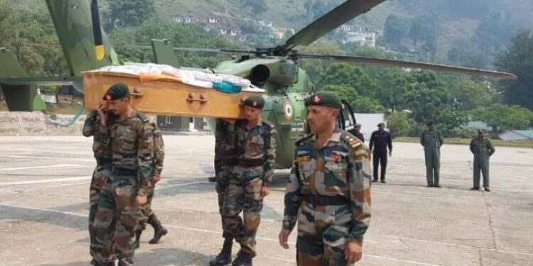मकालू चोटी में पर्वतारोहण के दौरान बर्फ में दबने से मृत सेना के जवान नारायण सिंह का पार्थिव शरीर आज सुबह सेना के हेलीकॉप्टर से धारचूला लाया गया। पैतृक आवास बरम ले जाने के बाद उनकी अंत्येष्टि होगी। 16 मई को मकालू पर्वत पर चढ़ने के दौरान कुमाऊं स्काउट के सैनिक नारायण सिंह परिहार की मौत हो गई थी। बताया जा रहा है कि मौसम खराब होने के कारण शव लाने में देरी हो रही थी। नारायण सिंह परिहार के बुजुर्ग माता-पिता, पत्नी और बच्चे बरम गांव में शव पहुंचने का इंतजार कर रहे हैं।