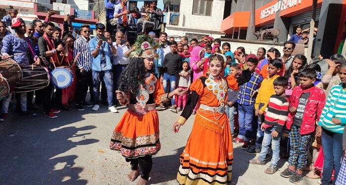 01- वाल्मीकि जयंती पर शोभा यात्रा के दौरान नृत्य करते कलाकार।