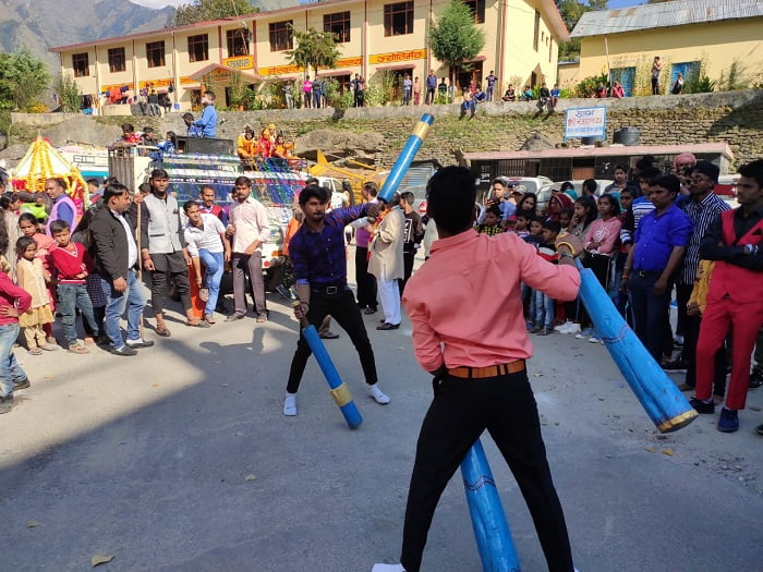 02-झाॅकी के दौरान करतब दिखाते वाल्मीकि समाज के युवा ।