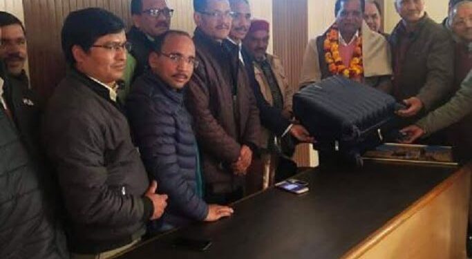 फोटो-प्रभारी मंदिर अधिकारी श्री सती को विदाई देते हुए बीकेटीसी के अध्यक्ष श्री थपलियाल व अधिकारी/कर्मचारी।
