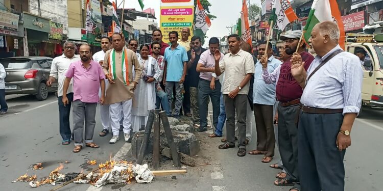 विकासनगर। गुरुवार को कांग्रेस कार्यकर्ताओं ने महात्मा गांधी पर टिप्पणी करने पर विकासनगर विधायक मुन्ना सिंह चौहान का पुतला दहन किया। कांग्रेस के कार्यकर्ता तिलक भवन पर एकत्र हुए जहां उन्होंने बैठक की। पीसीसी सदस्य संजय जैन ने कहा कि स्थानीय विधायक एक विद्वान व्यक्ति के रूप में जाना जाता है, राजनीतिक विरोध होने के बावजूद उनकी विद्वत्ता का सम्मान सभी करते हैं l इसके बावजूद उनके द्वारा महात्मा गांधी के बारे में की गई गलत बयानी उनके चरित्र में हुए परिवर्तन को स्पष्ट रूप से परिलक्षित करती है। राष्ट्रपिता महात्मा गांधी का अपमान कांग्रेस जन बिल्कुल भी सहन करने को तैयार नहीं है।