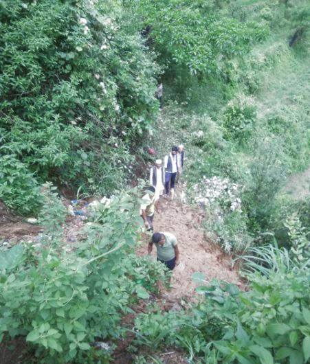 गैरसैंण। ब्लाक के दूरस्थ क्षेत्र खनसर घाटी के ग्राम सभा दिवाधार में ग्रामीणों ने भारी बारिश से क्षतिग्रस्त रास्ते की श्रमदान से मरम्मत की।