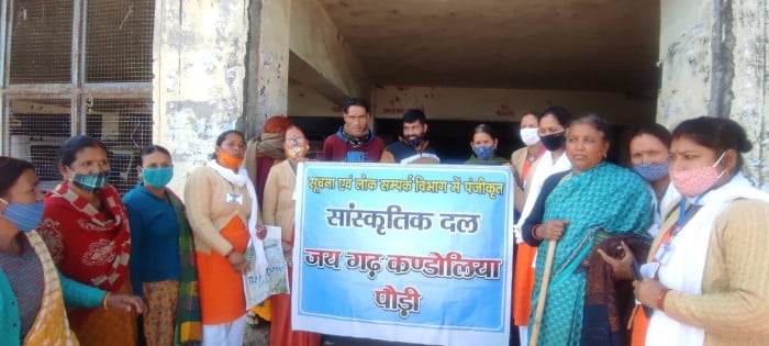सूचना एवं लोक संपर्क विभाग पौड़ी के तत्वाधान में पंजीकृत दल महिला समाज सेवा विकास समिति व गढ़ कंडोलिया दल के कलाकारों ने सांस्कतिक कार्यक्रम के माध्यम से कोरोना महामारी से बचने व आगामी 14 फरवरी को शत.प्रतिशत मतदान करने की अपील की। कलाकारों ने मतदाताओं को जागरुक करते हुए बताया कि प्रशासन द्वारा मतदान स्थल पर रैम्प, पेयजल, छाया व अन्य सुविधायें प्रदान की गयी हैं, युवा सोशल मीडिया के माध्यम से लोगों को मतदान करने के लिए प्रेरित कर जागरूक मतदाता की भूमिका निभा सकते हैं। आयोजित कार्यक्रम में ग्राम प्रधान पल्ली.मल्ली जयवीर रावत ने मतदान प्रतिशत बढ़ाने हेतु जिलाधिकारी द्वारा की गयी पहल की सराहना करते हुए कहा कि विधान सभा निर्वाचन को निर्भीक, प्रलोभन रहित, शांतिपूर्ण व स्वच्छ बनाने के लिए सूचना विभाग के माध्यम जिलाधिकारी महोदय ने शानदार पहल की है, सभी को मतदान में बढ़.चढ़ कर प्रतिभाग करना चाहिए।