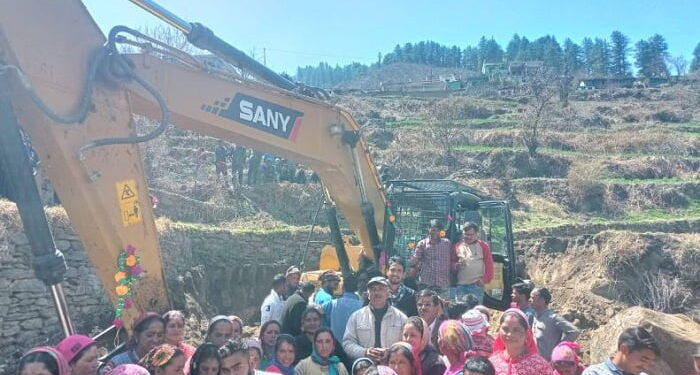 01- सुभाॅई-भविष्य बदरी में जेसीबी मशीन पहुंचने पर स्वागत करते ग्रामीण।