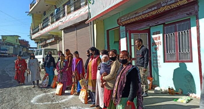 अल्मोड़ा। सर्वदलीय महिला संस्था अल्मोड़ा द्वारा देश में चल रहे लाॅकडाउन के चलते विभिन्न वार्डो के गरीब बेसहारा लोगों को धारानौला में राशन किट वितरित किये गये।
